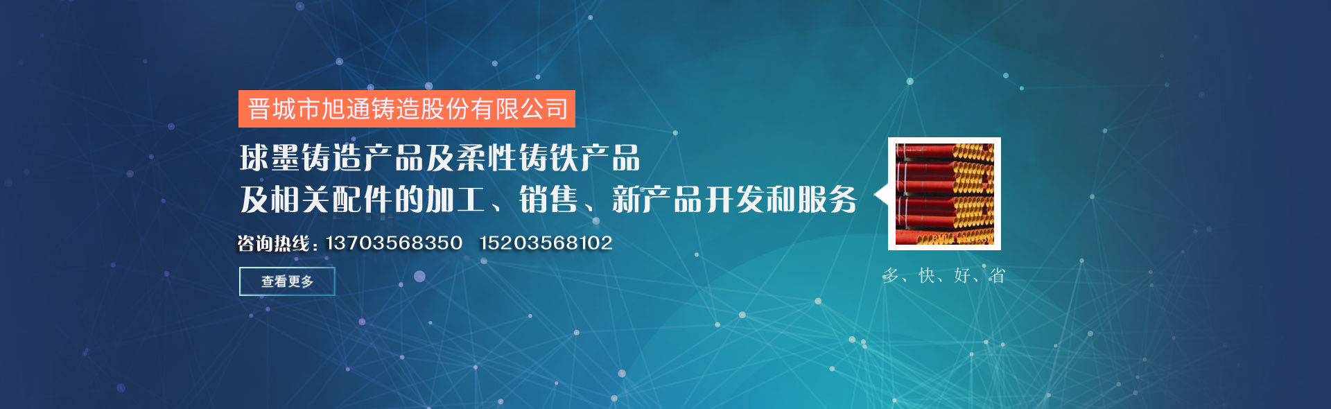 晉城市旭通鑄造股份有限公司是一家致力于球墨鑄造產(chǎn)品及柔性鑄鐵產(chǎn)品及相關(guān)配件的加工、銷售、新產(chǎn)品開發(fā)和服務的網(wǎng)絡平臺,以“多、快、好、省”為服務宗旨,多種選擇、快速定位、優(yōu)質(zhì)產(chǎn)品、省錢省力,為客戶提供精準服務......